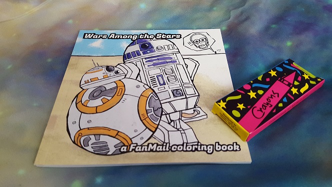 I like the idea better than the execution. Coloring books are making a comeback with adult versions being very popular, but the designs in this one were extremely simple and they printed each design twice in what feels like an attempt to pad the book. They included a set of four crayons: red, yellow, blue, and green. Astute observers will note that BB-88, like many of the other pictures in the coloring book, cannot be colored in with the selection provided.